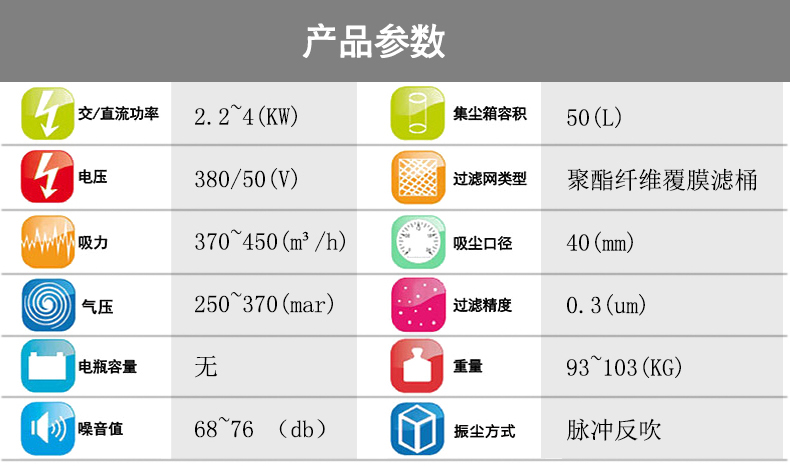 脉冲反吹振尘,快速便捷清理,从而保证吸力始终如一;